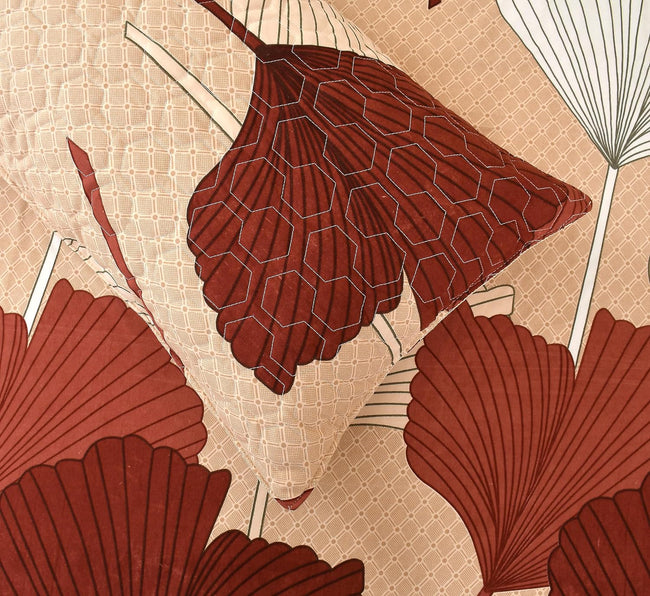 King Bed Bedsheet with Quilted Pillow covers (Beige Lillies)