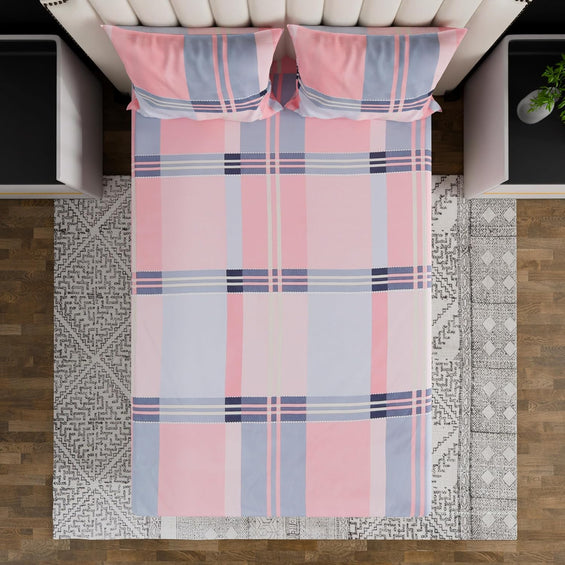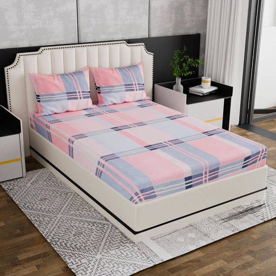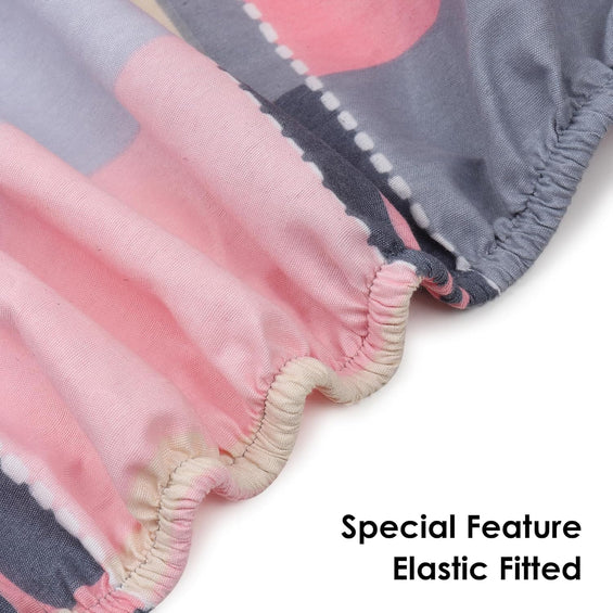 Fitted King Bed Bedsheet with Pillow covers (Bubblegum Blocks)