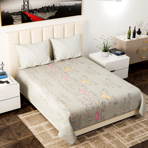 King Bed Bedsheet with Pillow covers (Morning Dew)