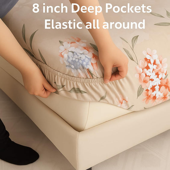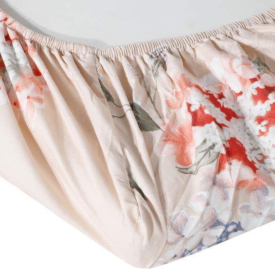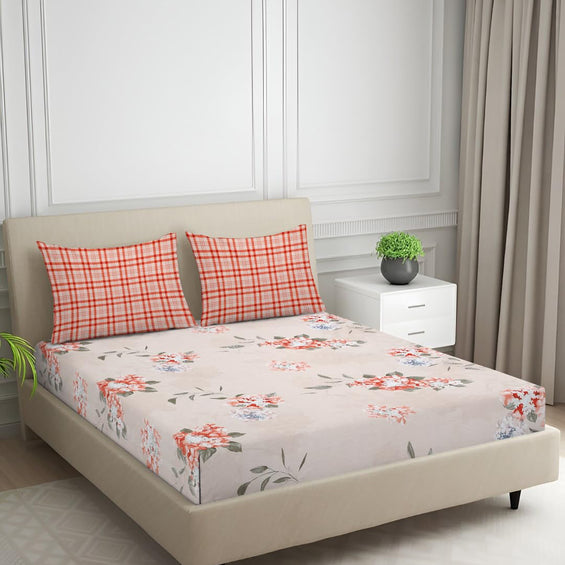 Fitted King Bed Bedsheet with Pillow covers (Blossom Mist)