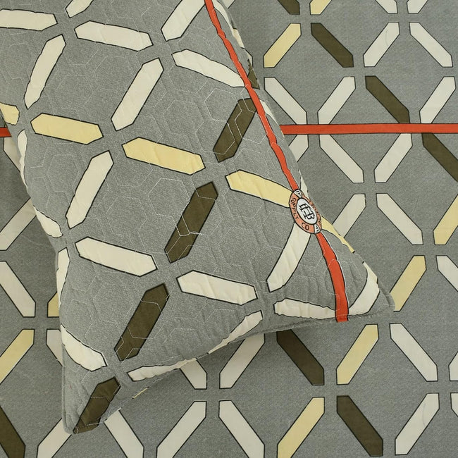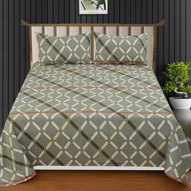 King Bed Bedsheet with Quilted Pillow covers (Geometry)