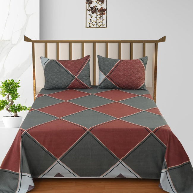 King Bed Bedsheet with Quilted Pillow covers (Abstract Maroon)