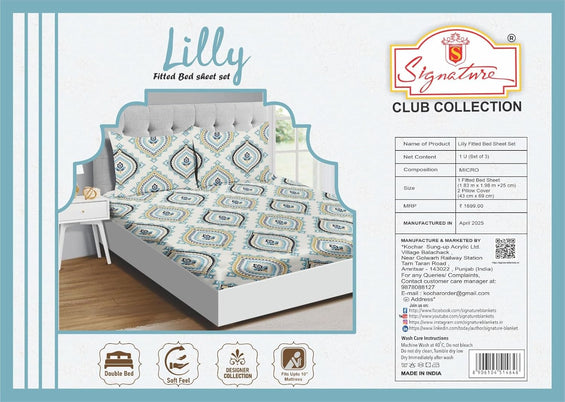 King Bed Fitted Bedsheet with Pillow Covers (D1)