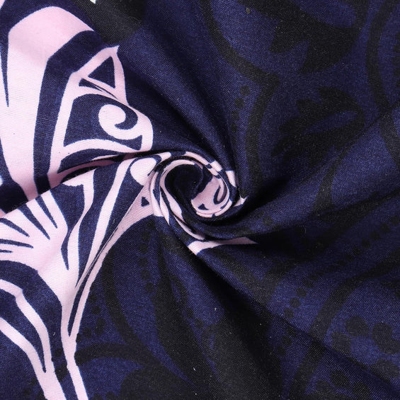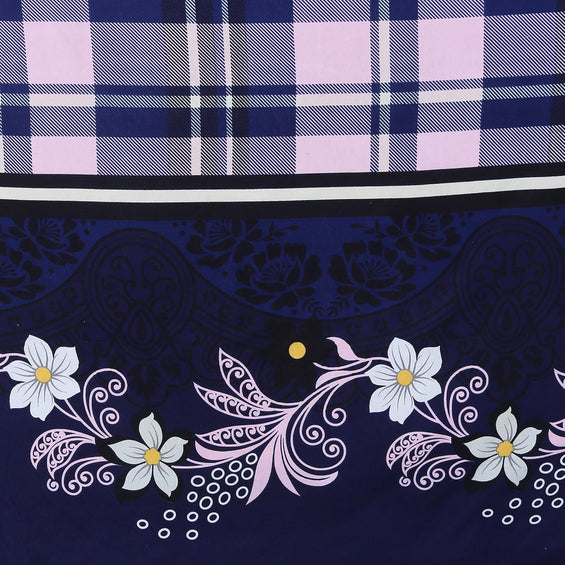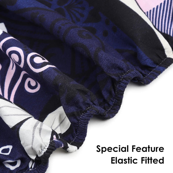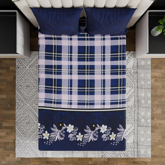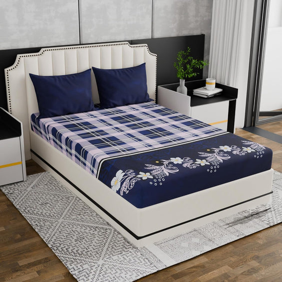 Fitted King Bed Bedsheet with Pillow covers (Midnight Flora Grid)