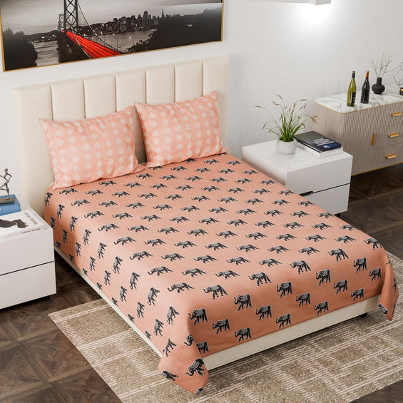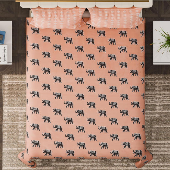 King Bed Bedsheet with Pillow covers (Elephants Trumpet)