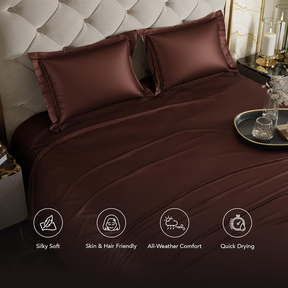 Satin King Bed Bedsheet with Pillow covers (Burgundy)